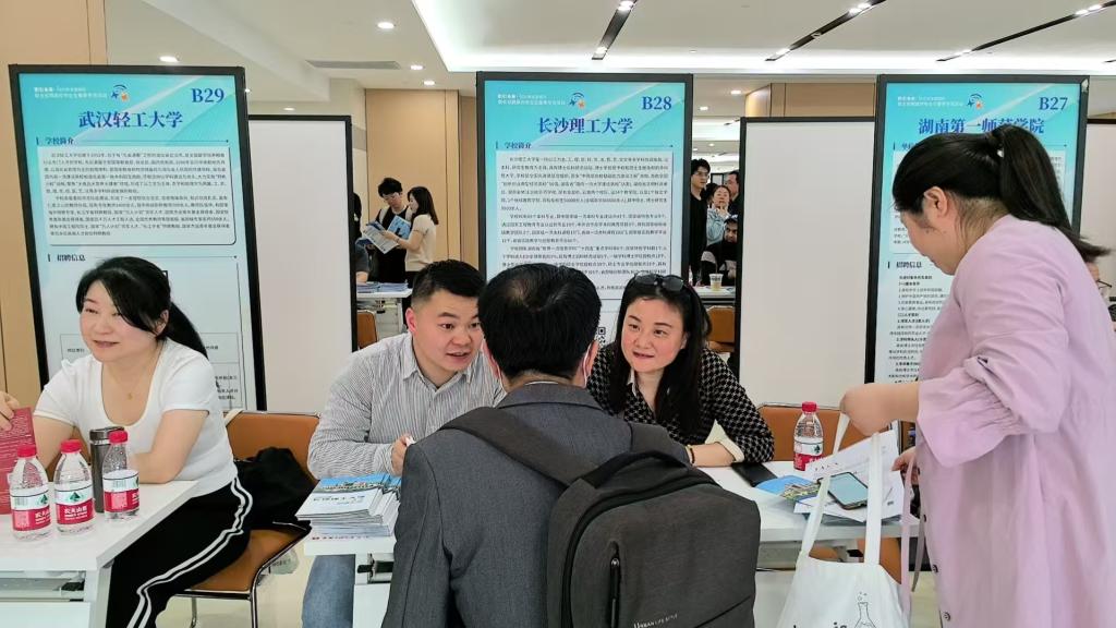 会议现场设立政策咨询展位,通过宣传手册发放及"一对一"深度洽谈等形式,系统阐释学校"人才强校"战略内涵。面洽会吸引了上海交通大学、复旦大学、同济大学等多个知名高校的博士、博士后参与。在在线买世界杯平台展位前,与会代表向应聘者详细介绍了学校学科布局及人才引进政策,重点解读了青年教师培养机制及“湖湘学者”人才计划。针对人才关心的薪酬待遇、住房保障、考核与晋升等实际问题进行了一对一答疑,并现场接收简历。本次洽谈会世界杯官网共收到来自交通、土木、化学、材料科学、人工智能等领域的博士简历近30份。后续,学校人才工作办公室将分类跟进意向人选,加速推进人才引进流程。