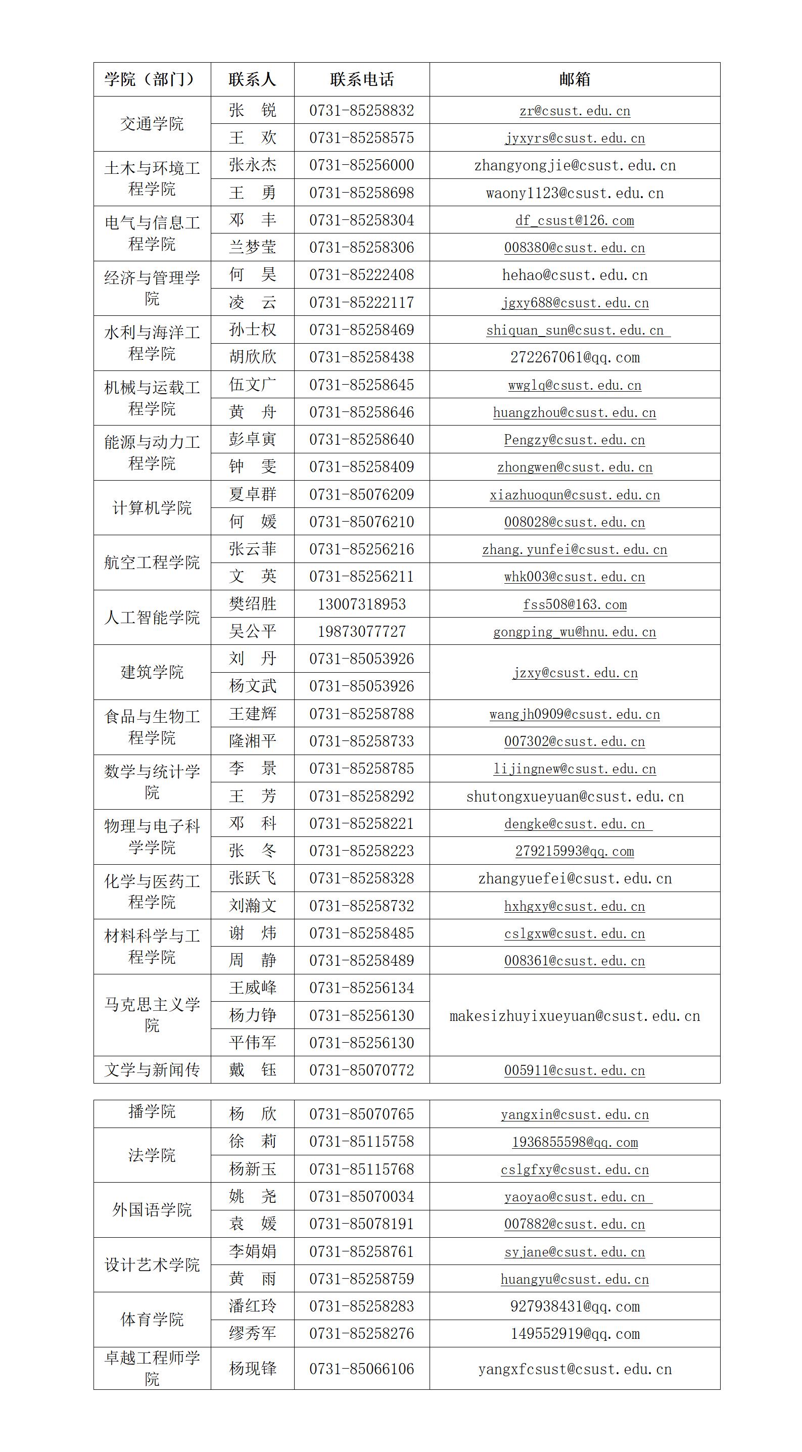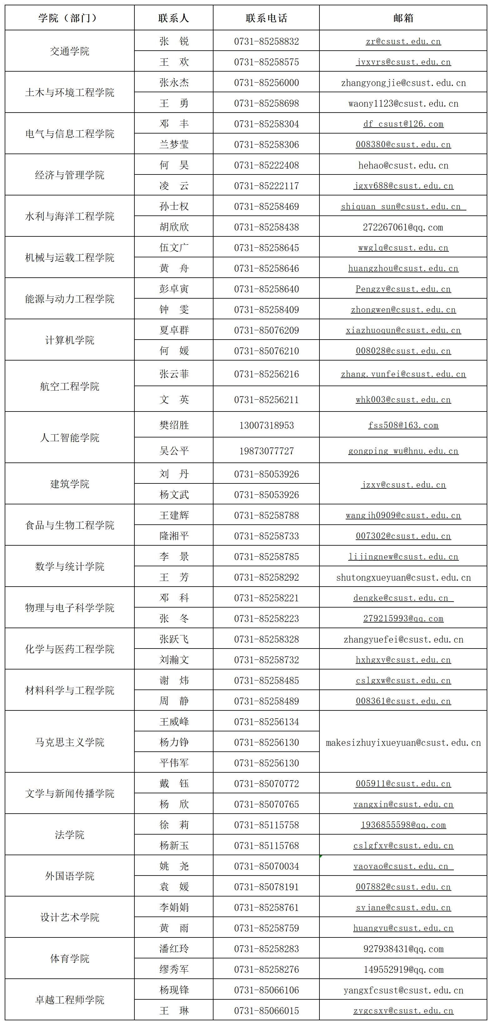五、各学院(部门)联系方式