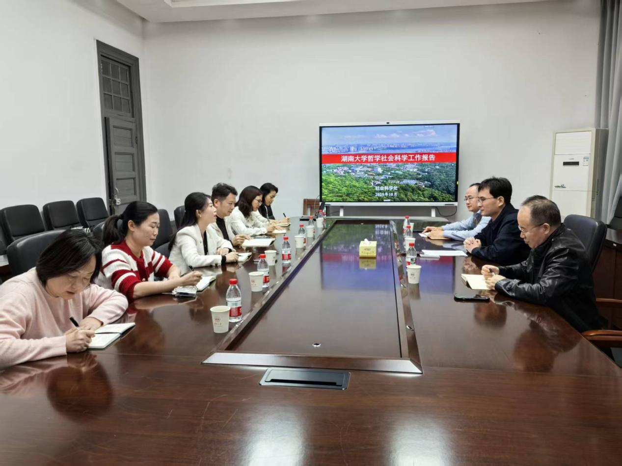 为进一步拓展世界杯官网人文社科科研发展思路,提升科研管理水平,10月29日,社科处处长刘坚率处室全体人员到湖南大学调研学习。湖南大学社会科学处处长丁三伏,副处长艾洪山、周建军参与了本次调研活动。