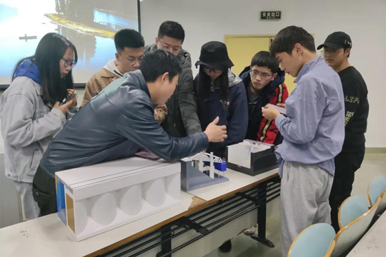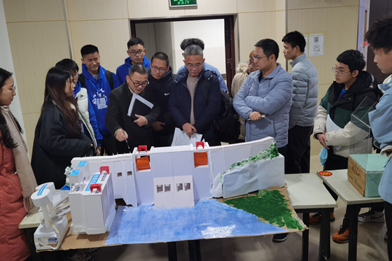 学院为68件参赛作品均配备了专业教师进行全程技术指导,与此同时辅导员们将思政教育融入作品构思与制作环节,引导学生关注交通强国、海洋强国等国家战略,通过比赛强化学生对专业的认同与热爱。11月24日湖南惟楚科教实训室设备有限公司从专业公司角度出发举行了赛前指导讲座,和学生分享模型的设计和制作经验,现场演示并指导模型制作过程。12月6日在金盆岭校区举行了预赛,邀请6位专业教师对68件参赛作品进行指导,提出修改意见。针对大一新生专业知识与参赛经验不足的问题,学院先后邀请中国水利学会李贵宝博士等专家学者入校进行了节水与洁水、湖湘水文化、水泵选型等讲座。