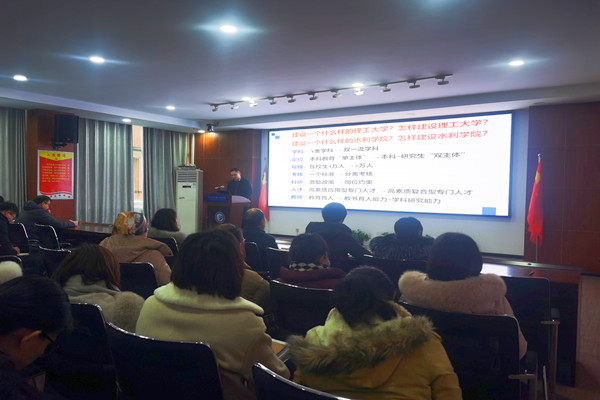 2月22日下午,水利与环境工程学院在工三B319组织全院教职工学习新学期校领导讲话精神。