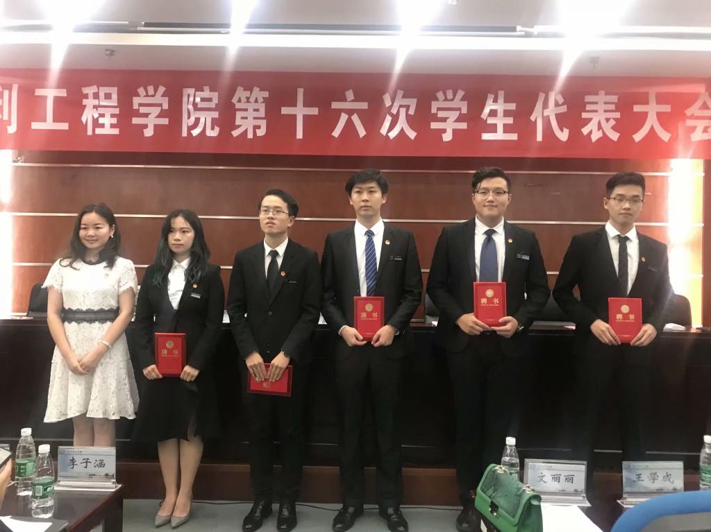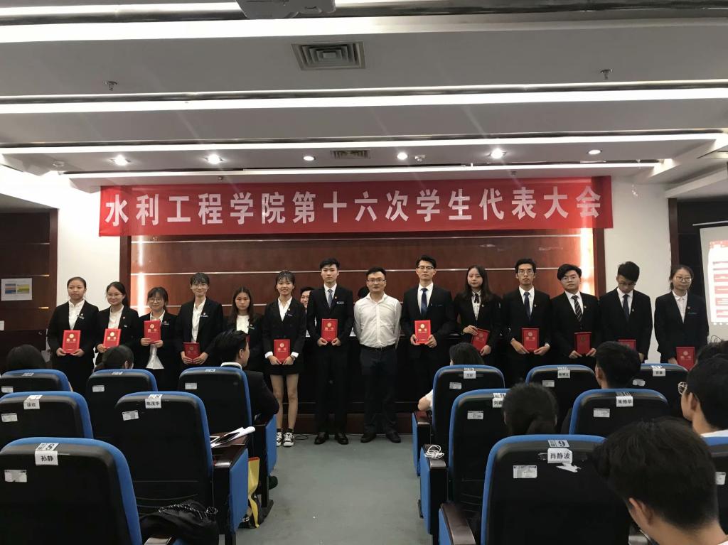 大会审议通过了水利工程学院第十五届学生会主席朱浩作的题为《勇担时代新使命 凝聚青春正能量 同心筑梦新时代》的工作报告,听取了《水利工程学院第十六次学生代表大会提案工作报告》。大会选举产生了19名第十六届学生委员会委员,文丽丽、王学成为水利工程学院第十五届学生委员会委员颁发聘书。