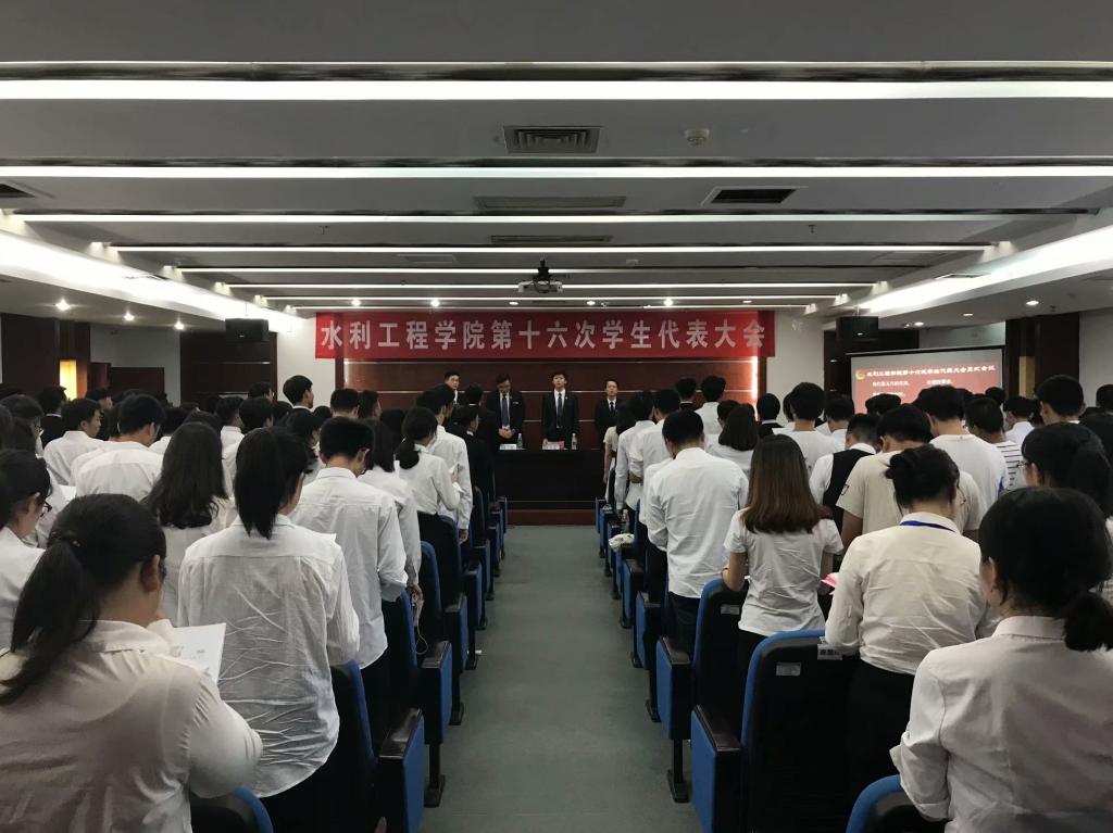 2018年6月26日下午四点,在线买世界杯平台水利工程学院第十六次学生代表大会正式会议在云塘校区图书馆小报告厅召开。出席本次会议的领导有校团委副书记文丽丽,院党委副书记王学成,院团委书记杜丘,学工办主任刘灿,辅导员邓奕琳、吕思以及校学生会主席李子涵。会议由水利工程学院团委副书记甯子豪主持,水利工程学院120名学生代表出席本次会议。