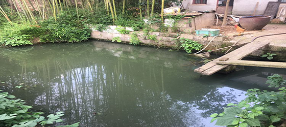 团队在实地考察中发现池塘中有大量绿藻以及垃圾,此地水污染并未得到及时有效的治理。小组成员在对附近居民进行走访时发现人们对该池塘污染情况并不重视,环保意识较差。下午实践团围绕本地下水道的污水进行了调研,污水并没有得到及时处理,颜色呈黑绿色。生活污水并未经过任何处理便排出。这不仅加重了当地的水污染,也滋生了有害微生物给附近居民的生活健康带来威胁。