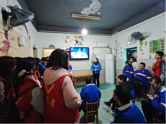 暖心陪伴环节,同学们来到社区特殊群体服务中心,用最真诚的方式传递关爱。大家围坐成圈,轻声交流、耐心倾听,伴着熟悉的旋律合唱经典歌曲,现场氛围温馨而治愈。扎根基层多年的照料老师,分享了自己坚守岗位、守护特殊群体的故事,朴实的话语里满是责任与热爱:“陪伴不需要复杂的形式,真心的靠近就是最好的温暖。”同学们在陪伴中学会共情,在倾听中懂得坚守,更深刻体会到志愿服务的价值与意义。