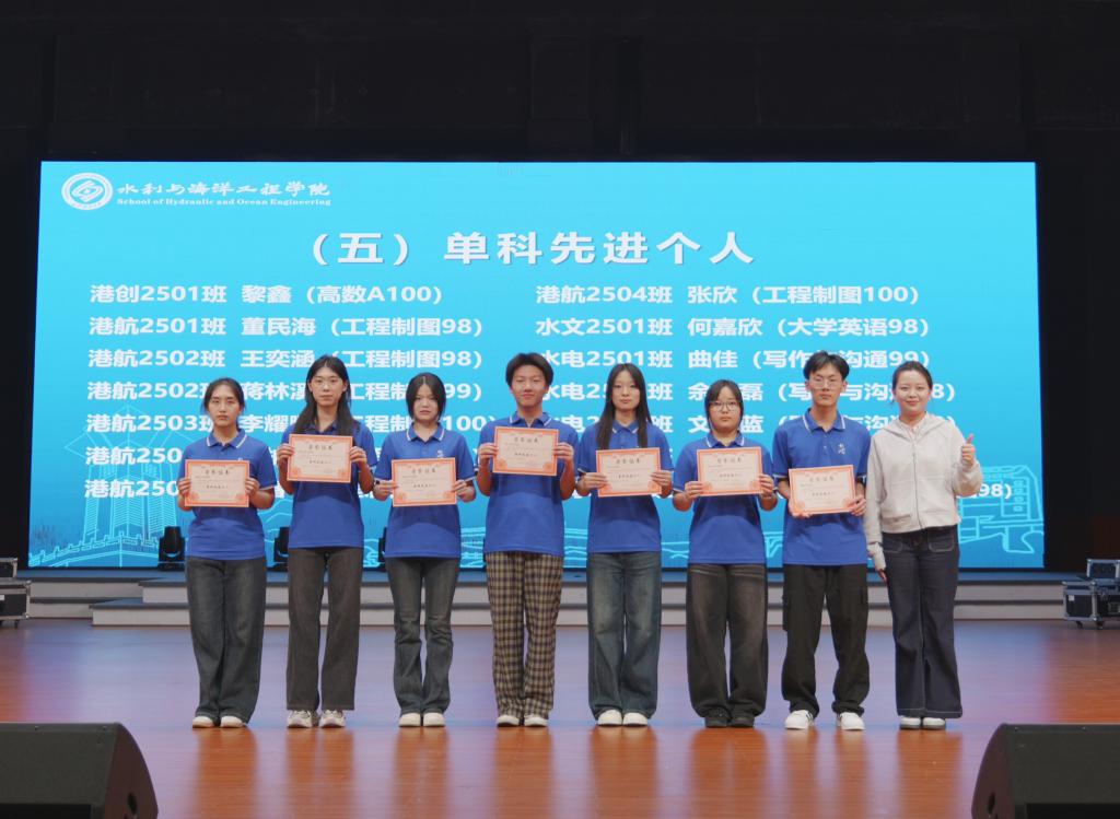 表彰环节中,学院对上学期表现突出的集体与个人进行集中表彰。其中给排水2502班、水文2501班、给排水2503班、船海2501班获评“优良学风班级”;水文2501班以81.8%的英语四级通过率获评“英语四级先进班级”。同时,大会对英语四级先进个人、绩点先进个人、单科先进个人等予以表彰,以榜样力量激励全体同学见贤思齐、奋勇争先。