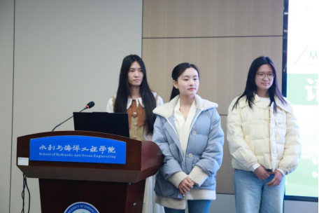 3月13日晚,水利学院在新能源大楼1栋2楼会议室举行2026年“挑战杯”大学生创业计划竞赛院级选拔赛。学院专业教师武海鹏、刘易庄和文晓凤担任评委,由学生邓清馨主持,共6个小组参与答辩。