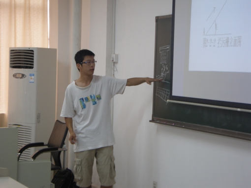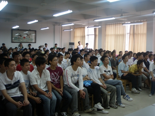 首先,王学成老师向全体新生介绍了翁常东、王刚两位同学。他们在全国首届水利创新设计大赛中分别获得了全国一等奖和全国二等奖的优异成绩。同时,王老师还详细地介绍了创新设计的具体情况,希望广大的09级新生能够踊跃参加此类大赛,把想法变成行动,把灵感化为作品。