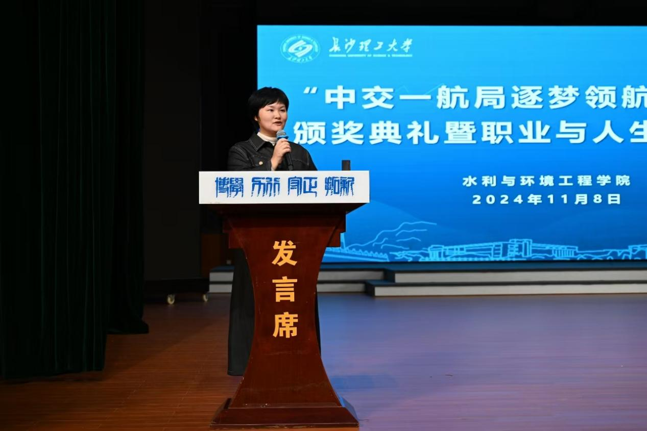 11月8日晚,中交一航局“逐梦领航”奖学金颁奖典礼暨职业与人生大讲坛在在线买世界杯平台大会堂顺利举行。出席本次活动的嘉宾有中交一航局党委组织部部长、人力资源部总经理周红涛先生,校招就处处长田上、副处长李娜,交通学院党委副书记任志祥、土木学院党委副书记黄阿明,参与活动的有来自交通、土木、水利三个学院800余名学生代表,活动由水利学院党委副书记银波主持。