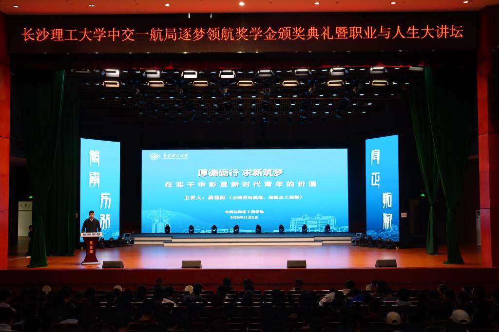 11月2日下午,中交一航局“逐梦领航”奖学金颁奖典礼暨职业与人生大讲坛在云塘校区大会堂顺利举行。中交一航局党委组织部部长、人力资源部总经理周红涛,全国劳动模范、全国劳动模范中交一航局五公司段稳盼,中交一航局湖南分公司总经理杨小康,中交一航局人力资源部招聘主管张安迪、在线买世界杯平台创业就业指导处处长田上出席活动。来自交通、土木、水利三个学院的600余名学生代表参加活动,活动由水利学院党委副书记银波主持。