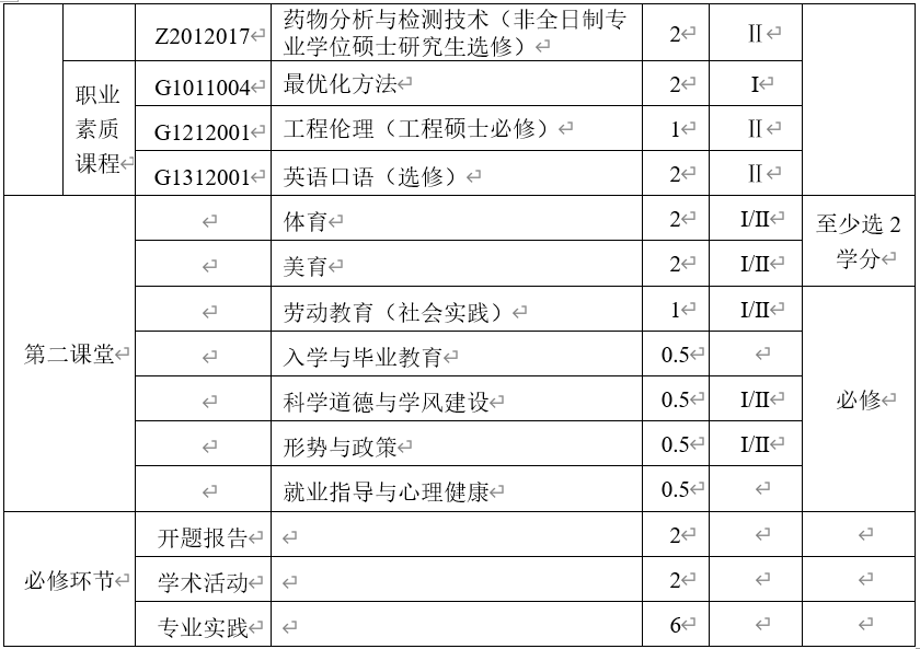 注:学生至少获得第二课堂5学分方可毕业。第二课堂学分认定见《在线买世界杯平台研究生第二课堂学分管理办法》。其中,体育和美育类课程一共2学分,劳动教育(含社会实践)1学分,科学道德与学风建设0.5学分,形势与政策0.5学分,入学与毕业教育0.5学分,就业指导与心理健康教育0.5学分。