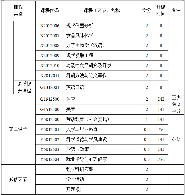 注:学生须至少完成第二课堂5学分方可毕业。第二课堂活动学分认定见《在线买世界杯平台研究生第二课堂学分管理办法》。