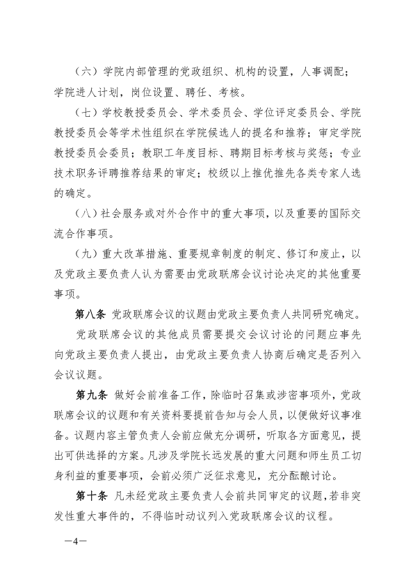 关于印发《在线买世界杯平台学院党政联席会议议事规则》的通知