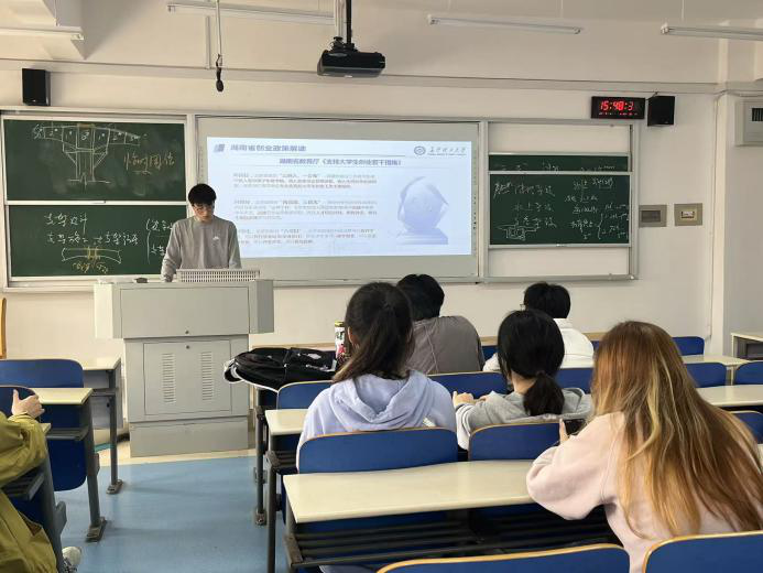 班会采用政策宣讲、案例分享、互动答疑相结合的形式,内容贴近学生需求。各班围绕《湖南省大学生创业若干政策措施》及学校相关文件,详细解读实用政策,并介绍学校创新创业园入驻条件与配套服务。结合当前就业形势,各班分析留湘创业机遇与前景,部分班级邀请获奖学生、优秀校友现场分享经验,为同学们在项目选择、规划落地等方面提供务实参考。互动环节中,大家主动提问、积极交流,现场氛围热烈。班会结束后,各班按要求组织同学填写反馈问卷,确保活动取得实效。
