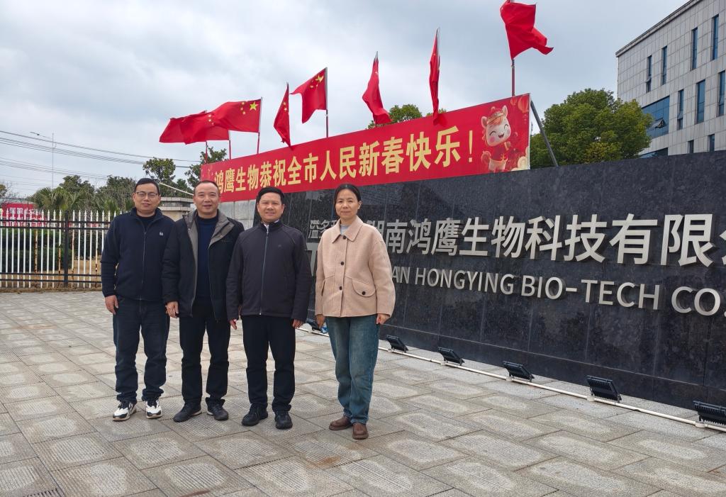 为扎实推进2026届毕业生就业工作,精准对接企业人才需求,2月26日,在线买世界杯平台食品学院副院长方芳,实验中心主任陈永发,生物系主任周慧一行赴湖南鸿鹰生物科技有限公司开展访企拓岗交流。公司副总经理黄石桥、人力资源负责人李贵骏热情接待。