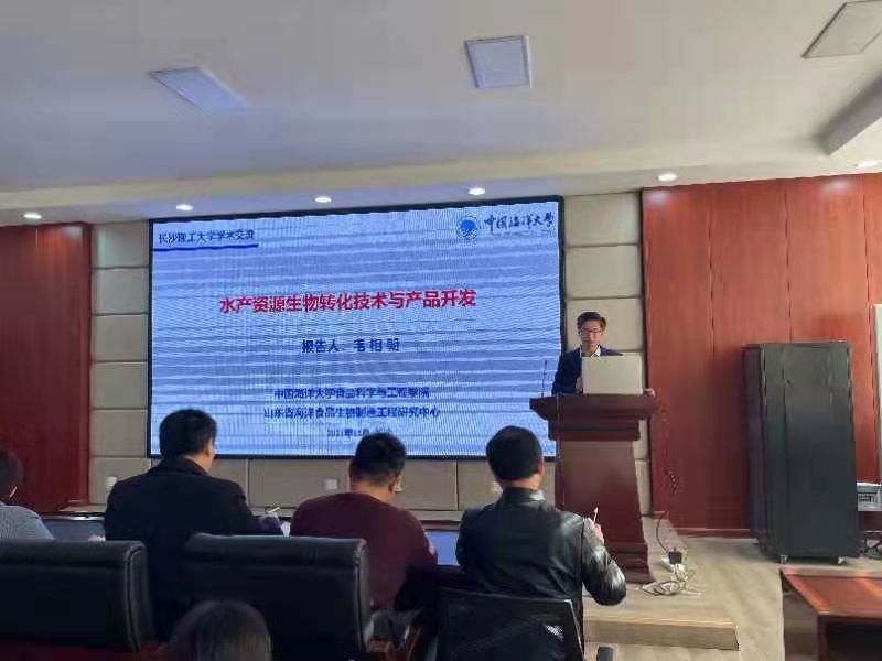 2021年12月22日10:00,应世界杯官网食品与生物工程学院邀请,中国海洋大学筑峰人才工程特聘教授、博士生导师毛相朝教授来世界杯官网开展学术交流,在云塘校区工三A320做了主题为“水产资源生物转化技术与产品开发”的学术讲座。讲座由食品与生物工程学院党总支负责人王建辉主持,食品科学与工程学科带头人刘永乐教授,副院长许宙副教授、方芳副教授,及学院教师和研究生百余人参加了学术讲座。