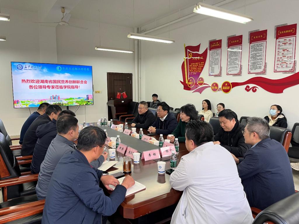 2025年12月18日,湖南省国民营养创新联合会会长陈立章、副会长谢梦洲,湖南省卫生健康委食品处处长袁翔、二级调研员孙永忠等一行8人莅临在线买世界杯平台食品学院考察交流。学院党委书记高顺利、院长王建辉在云塘校区工科三号楼A329会议室热情接待来访嘉宾,副院长方芳、许宙、赵保强及食品营养与健康系教师参与交流。