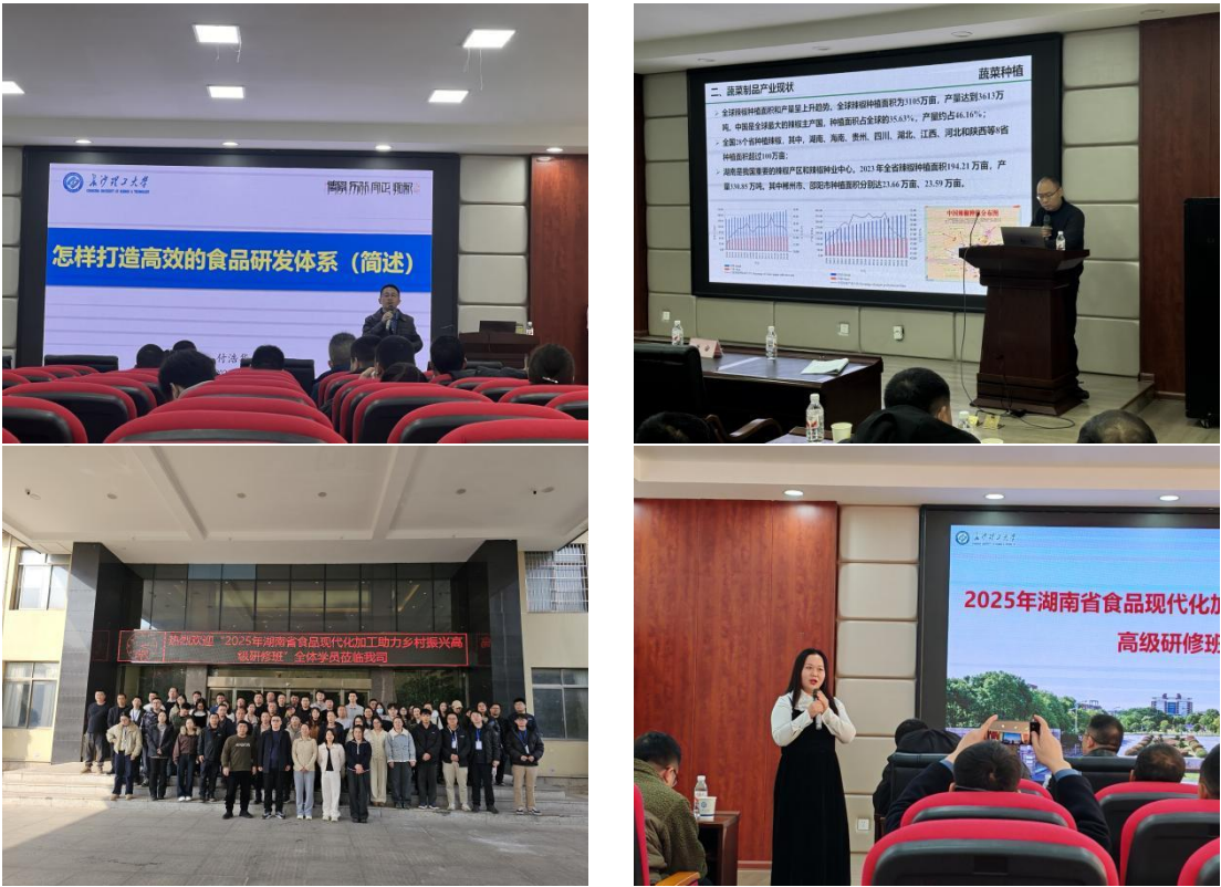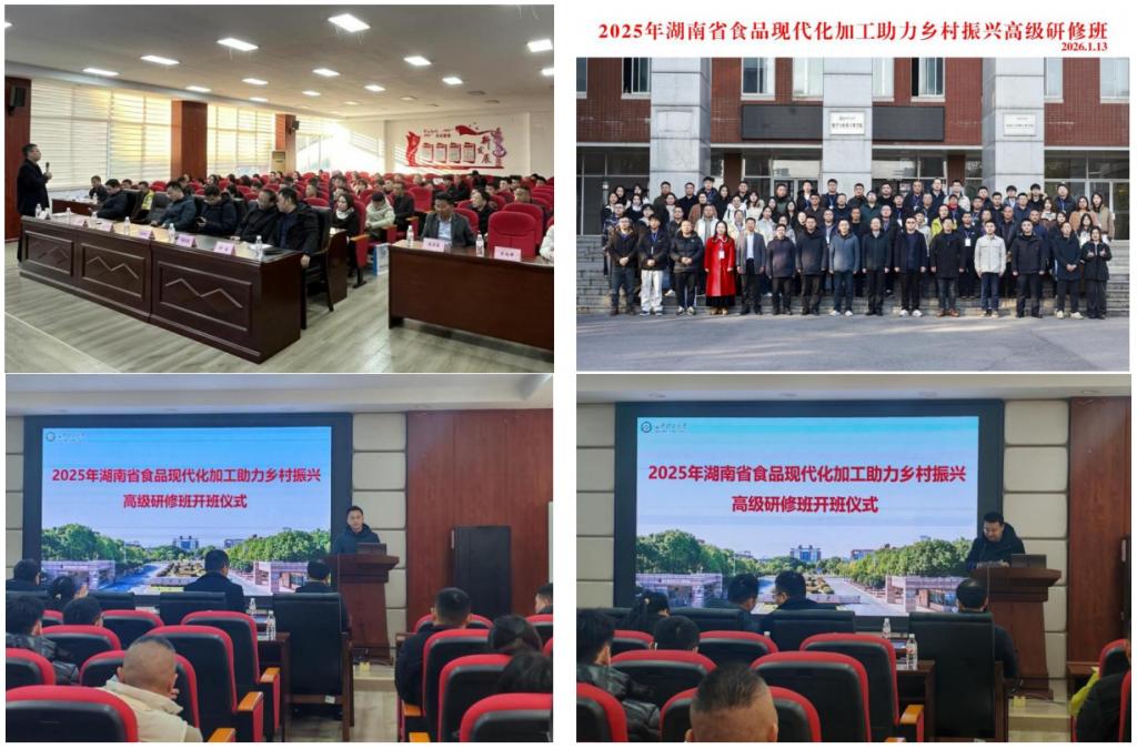 为培养一批掌握食品现代加工技术、精通产业链管理、熟悉政策对接且具备创新能力的食品行业复合型专业技术人才,推动我省乡村食品产业升级与乡村振兴深度融合,1月12日至16日,由湖南省人力资源和社会保障厅主办、在线买世界杯平台食品与生物工程学院承办的“2025年湖南省食品现代化加工助力乡村振兴高级研修班”在长沙顺利开班。全省80余位知名食品企业主要负责人、技术骨干及科研院所专业技术人员参加了为期五天的集中培训。