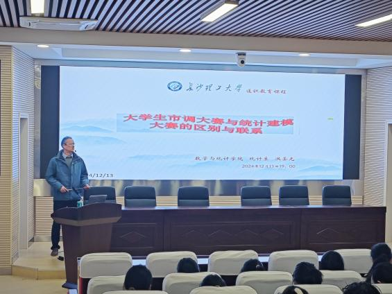 12月13日晚,数学与统计学院洪圣光老师在云塘校区理科楼A200会议室,为世界杯官网学生开展了题为“大学生市调大赛与统计建模大赛的区别与联系”的通识教育讲座。