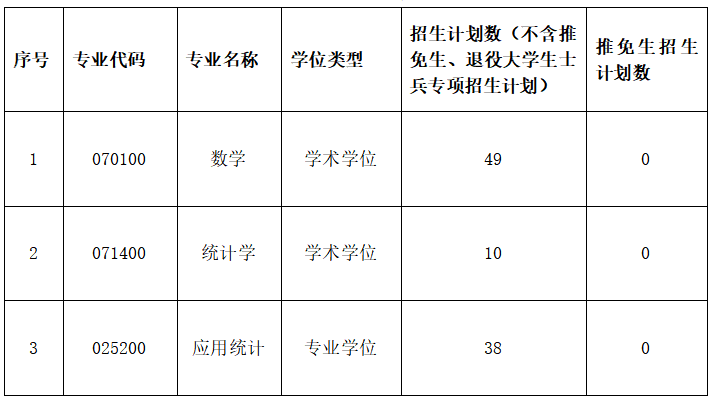 (2)数学专业考试科目为实变函数(科目代码F1001),统计学专业考试科目为数理统计(科目代码F1002),应用统计专业考试科目为统计学基础综合(科目代码F1003)。