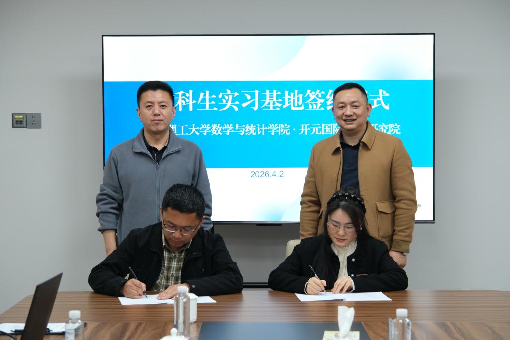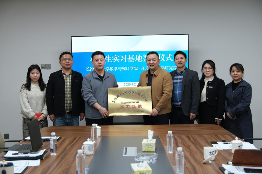 4 月 2 日,数统学院向永生、郑忠辉、李姣、吴君一行与开元国际数学研究院举行实习基地签约、授牌仪式,开元国际数学研究院的相关负责人参加座谈交流。