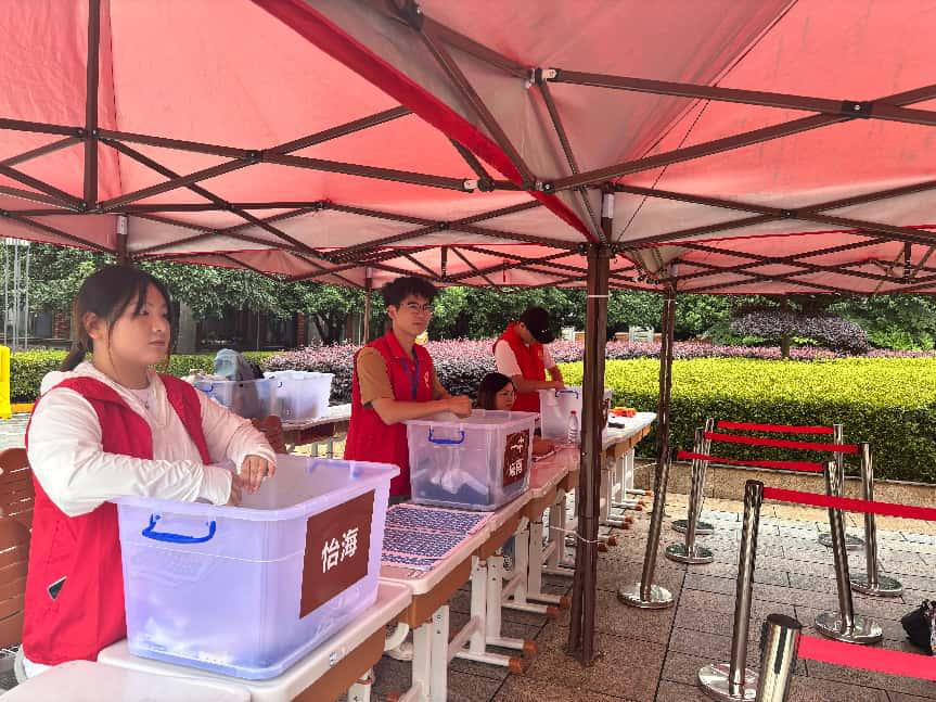 本次志愿活动不仅是一次大学生对考生的关怀,更是一场心灵的双向奔赴。期间,志愿者克服高温困难,耐心地保管每一位考生的寄存物品。8日上午,考场外出现动人一幕:一位考生在进入考场前,悄悄将自己的电动风扇塞到志愿者手中:“姐姐,你们辛苦了!”这个意外惊喜让志愿者们倍感温暖。