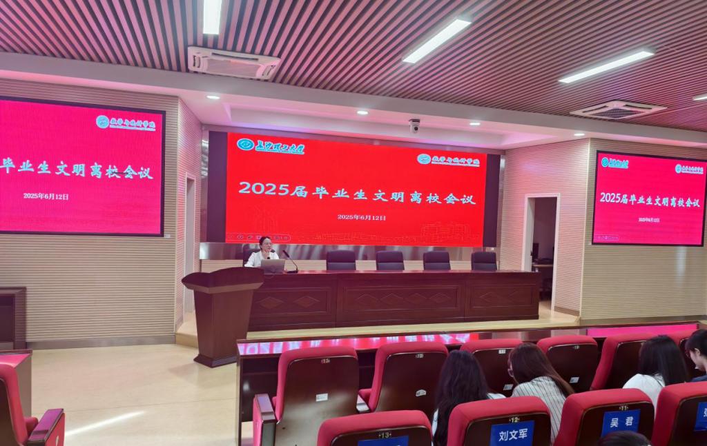 最后,彭峥就文明离校工作提出要求,一是恪守校规校纪,爱护公物环境,留下整洁美丽校园;二是心怀感恩,传递数统温暖与情谊;三是毕业生党员站好最后一班岗,在毕业生文明离校过程中发挥好旗帜作用。