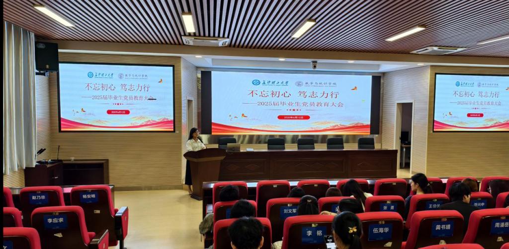 6月12日下午,数统学院在理科楼A200召开2025年毕业生党员教育大会,学院党委副书记兼副院长郑忠辉、学生党建辅导员庄奕、2021级辅导员彭峥和全体毕业生党员与会,会议由庄奕主持。