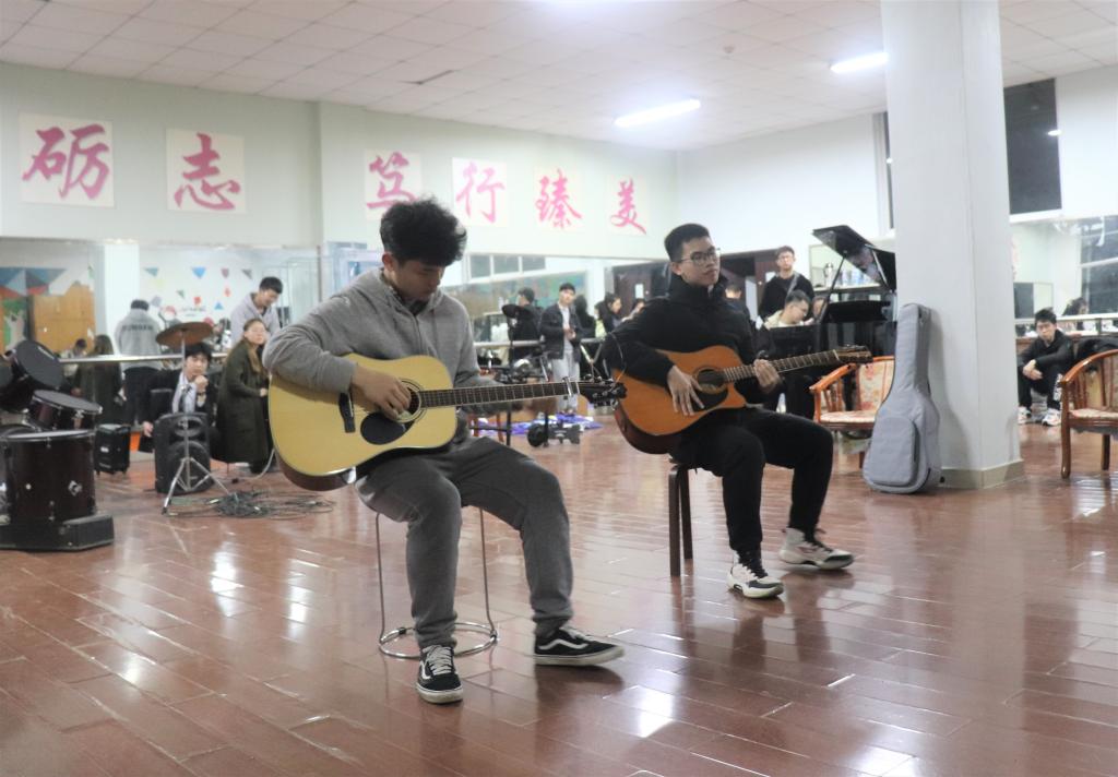 比赛开始前,参赛选手们便早早来到比赛现场,现场工作人员负责收拾场地,他们摆好桌椅、调试好音响音量,静待比赛正式开始。活动伊始,主持人先上台简单介绍比赛赛制、评委、奖励机制等,活动在同学们热烈的掌声中拉开帷幕。尽管舞台不大,但同学们都很认真地对待此次表演,有手指在钢琴键上跳跃,完整流畅弹完曲子的她;有拿吉他闭眼沉浸在他自己小世界里安静演唱的他;有完全放开自己,随音乐舞蹈的她;也有在党成立百周年唱《唱支山歌给党听》的他;还有英文歌、粤语歌、说唱、流行歌等一共28个节目。慢慢地,比赛接近尾声,大家一起拍合照后,初赛结束了。