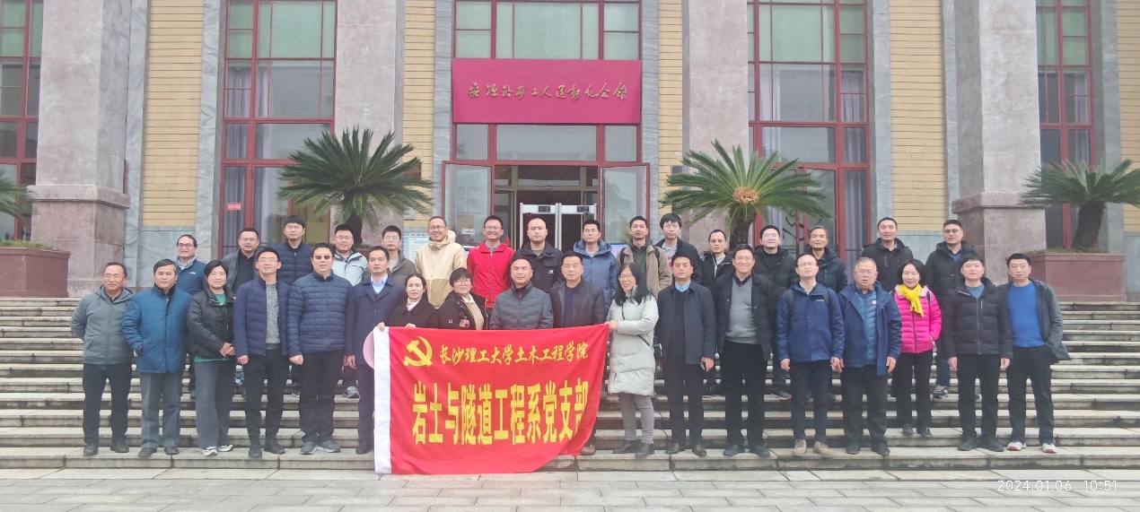 2024年1月6日,岩土与隧道工程系全体党员教师及入党积极分子赴江西萍乡安源路矿工人运动纪念馆开展“盘点工作攻坚克难 实干担当促进发展”主题党日活动,学院党委书记江河、副书记黄阿明、党委委员付果和张永杰等参加了此次主题党日活动。