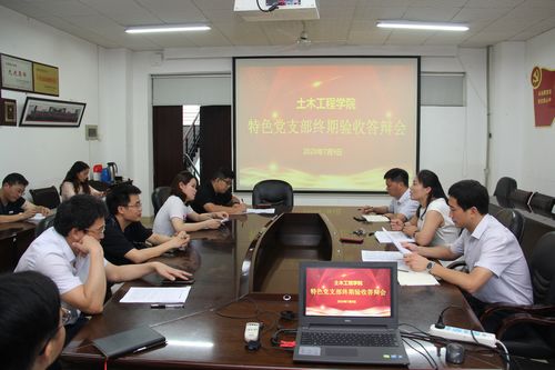 7月9日上午,土木学院党委在工二407会议室组织召开“特色党支部”终期验收答辩会,学院党委成员、教工党支部书记、学生党支部书记参加会议,会议由院党委副书记(主持工作)丁丹主持。