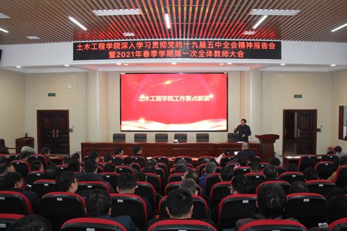 3月2日下午,土木工程学院举行党的十九届五中全会精神学习报告会暨2021年春季学期第一次全体教师大会。会议由副院长陈伏彬主持,全体教职工参加。