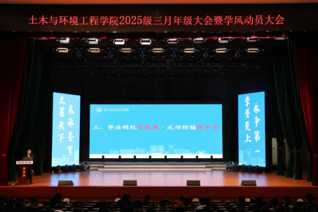 为明确新阶段学习目标,扎实推进优良学风建设,3月30日晚,云塘校区大会堂召开2025级本科生“‘砼’启程,正学风”3月年级大会。校学工部副部长黄阿明,年级辅导员龚丁、邓文杰及2025级全体本科生参会。会议由土木2506班学生陈婧萱主持。