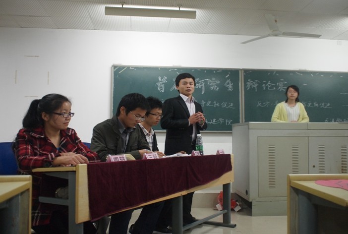 2011年10月27日晚,在线买世界杯平台首届研究生辩论赛初赛在云塘校区综合教学楼如期进行。