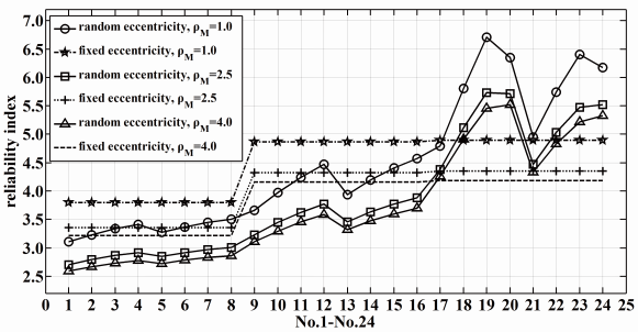真实考虑偏心距随机性,设计可靠性均匀,与目标可靠性一致。 |