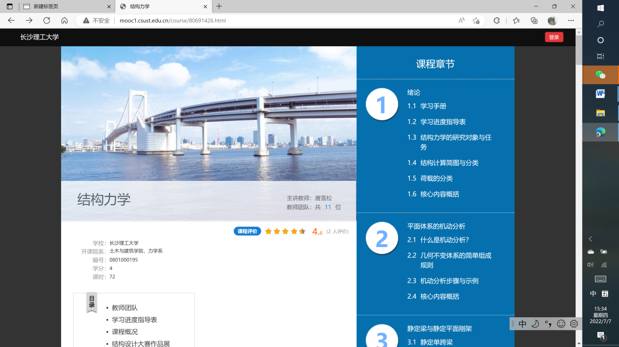 结构力学课程,2014年成为在线买世界杯平台首门建成并投入使用的慕课课程,2018年成为门批湖南省精品在线开放课程。