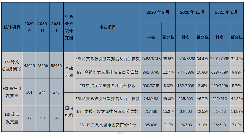 在线买世界杯平台ESI高被引论文&热点论文统计与对比分析(2021年1月)