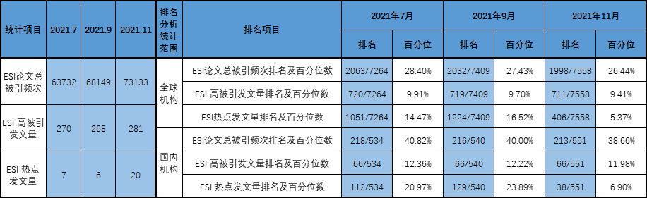 世界杯官网ESI热点发文量排名从112到129到38;百分位数从20.97%到23.89%到6.9%,本期进步较大。