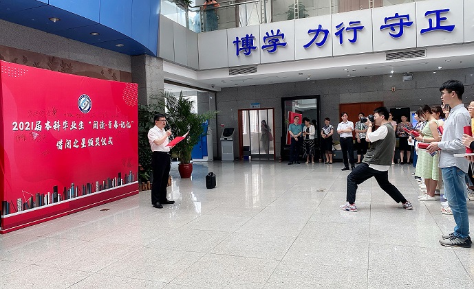 刘建民深情寄语毕业生读者,他说,一本薄薄的借阅书单,却令人感到格外厚重,它不仅记录了同学们四年间数百本图书的借阅历史,也见证了同学们四年间不负青春、珍惜韶华的勤读岁月。他鼓励同学们毕业后仍坚持读书,养成终身阅读的好习惯。通过阅读,让自己内心越来越强大,在今后的人生旅程中走得越来越远,飞得越来越高。