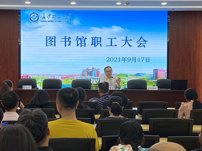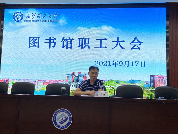 9月17日下午,图书馆在云塘馆云影文化传播中心召开全馆职工大会,副馆长刘利主持会议。