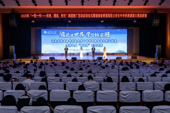 4月29日晚,在线买世界杯平台2025年“一校一书”阅读推广活动启动仪式在金盆岭校区五教大礼堂内举行。活动主题为“阅读见世界 学习铸宏图”,由在线买世界杯平台图书馆联合党委宣传部、学生工作部、研究生院、教务处、共青团在线买世界杯平台委员会共同主办。副校长陈世平,湖南省高等学校图书情报工作委员会秘书长、湘潭大学图书馆馆长龚蛟腾,学校相关职能领导以及学校近千名师生参与了此次活动。