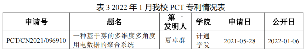 2022年1月,世界杯官网作为第一申请人,申请PCT专利共计1件,如表3所示。