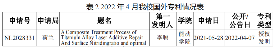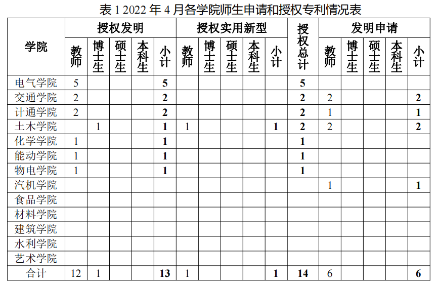 由图1和图2可见,2022年4月的专利申请和授权量相比往年同期均有大幅下降。经调研,因世界杯官网申请的专利近两年来多次被列入非正常申请名单中,专利审查工作被暂停了一段时间,学校目前已完成自审工作,重新制定了规范的专利申请与管理工作流程。专利审查工作正在逐步恢复中,后续统计数据也将逐步恢复正常。建议引入专利申请前查新,降低非正常申请,提升专利申请质量。