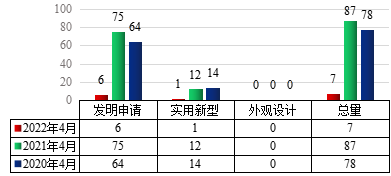 图1 2022年4月世界杯官网专利申请类型分布及近两年同期申请情况