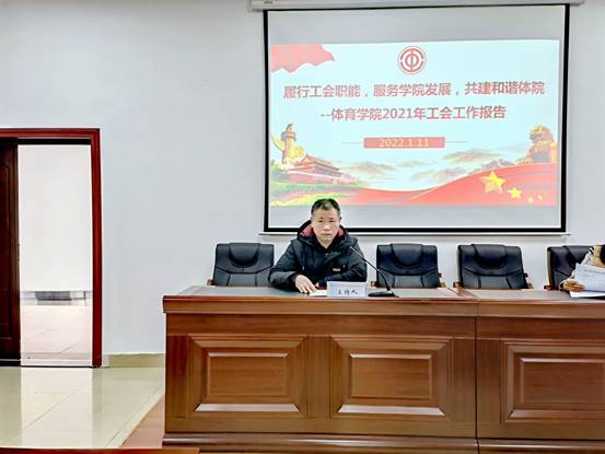 副院长兼院分工会主席潘红玲以《履行工会职能,服务学院发展,共建和谐体院》为主题作体育学院分工会工作报告,潘红玲指出,一年来分工会围绕中心服务大局,在推进师德师风建设、加强民主管理与民主监督、服务教职工所需,营造和谐氛围等方面充分发挥职能作用,今后将坚定不移走中国特色社会主义工会发展道路,充分发挥教代会、工会在组织动员群众、教育引导群众、联系服务群众和维护群众合法权益中的作用,凝心聚力,为学院高质量发展营造一个民主、法治、和谐的校园环境而奋斗。