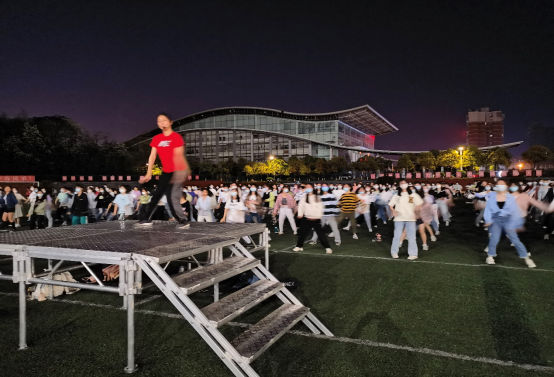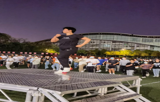 从4月5日晚上开始,在在线买世界杯平台云塘校区田径场,体育学院分工会会员、工会干部主动担当,选编学生们喜闻乐见的音乐、舞蹈,带领同学们齐跳健美操,活力四射的舞姿一扫疫情封控的烦闷。