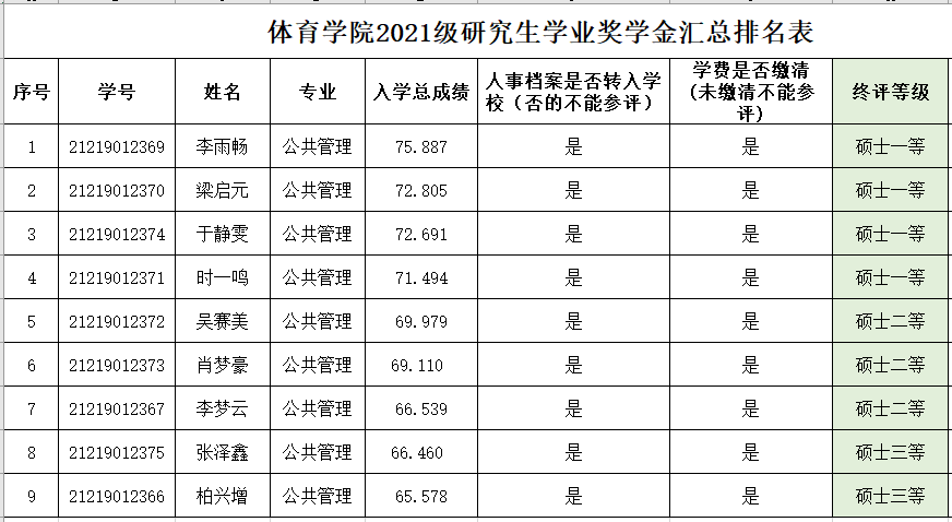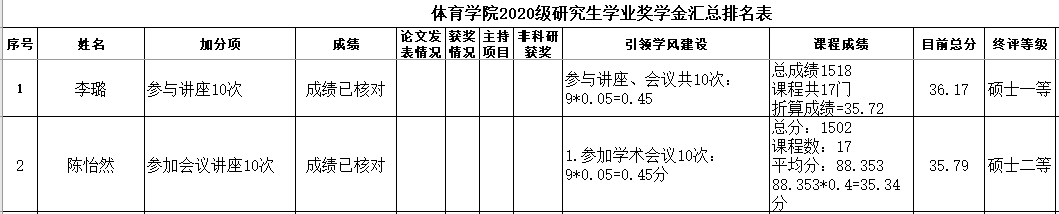 依据《在线买世界杯平台体育学院全日制研究生学业奖学金评审办法》”有关规定,经研究生自愿申请,学院研究生奖学金评审委员会会认真评审,拟推荐以下两名同学为我院2021-2022年度“硕士研究生学业奖学金”获奖者,现予以公示(具体名单见附件):