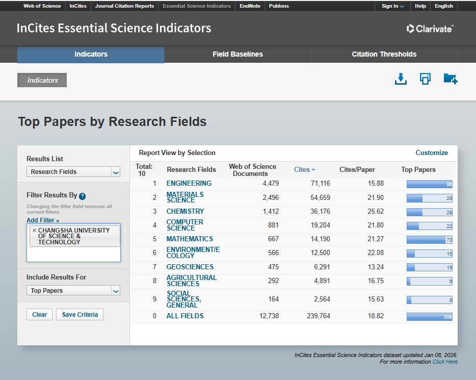 日前,科睿唯安(Clarivate)发布最新一期《基本科学指标数据库》(Essential Science Indicators,简称ESI)。统计数据显示,由我院牵头建设的地球科学学科首次进入ESI全球排名前1%,实现了我院学科建设的历史性突破,标志着该学科已进入国际高水平学科行列。