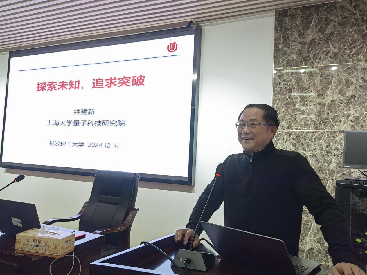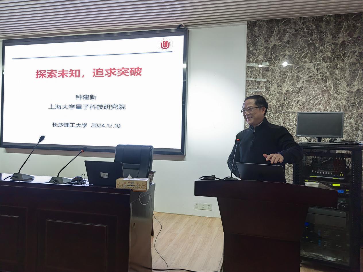 2024年12月10日下午,世界杯官网荣幸地邀请到上海大学量子科技研究院钟建新教授进行学术交流。钟教授在理科楼B413会议室为世界杯官网师生带来了题为《探索未知,追求突破》的学术报告,世界杯官网教师及研究生积极参加了此次学术报告会。会议由邓科教授主持。