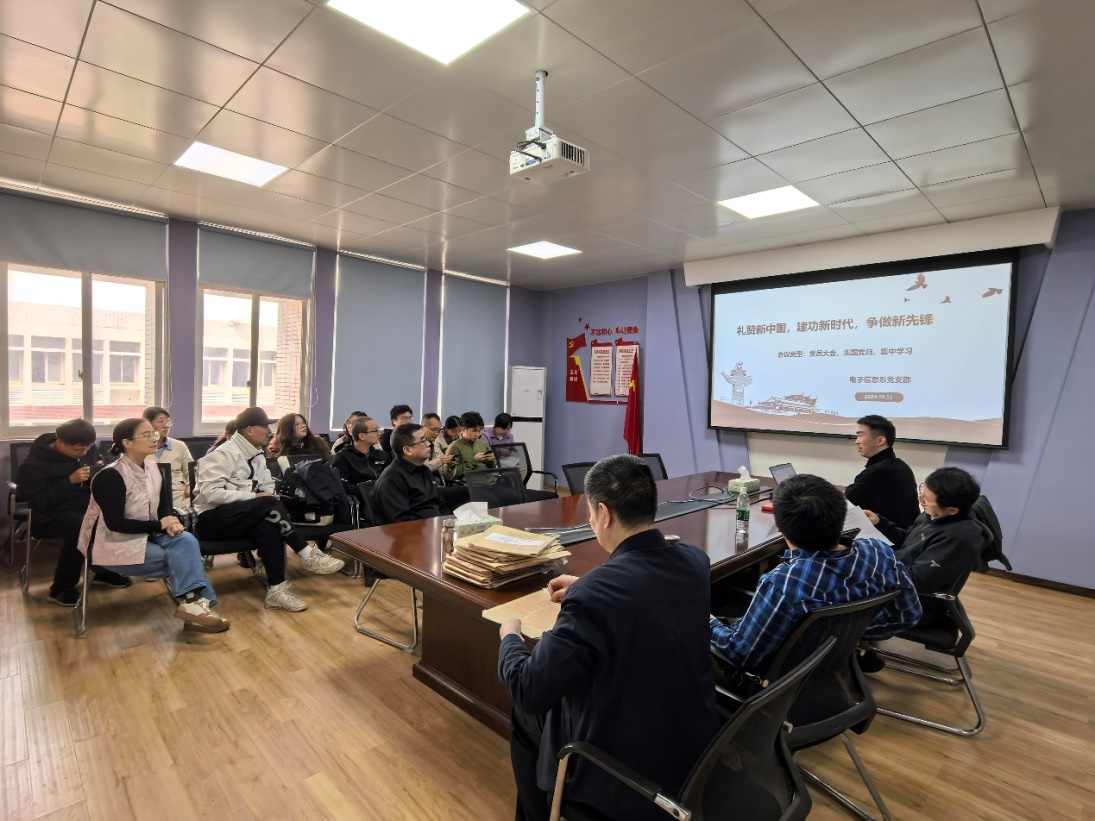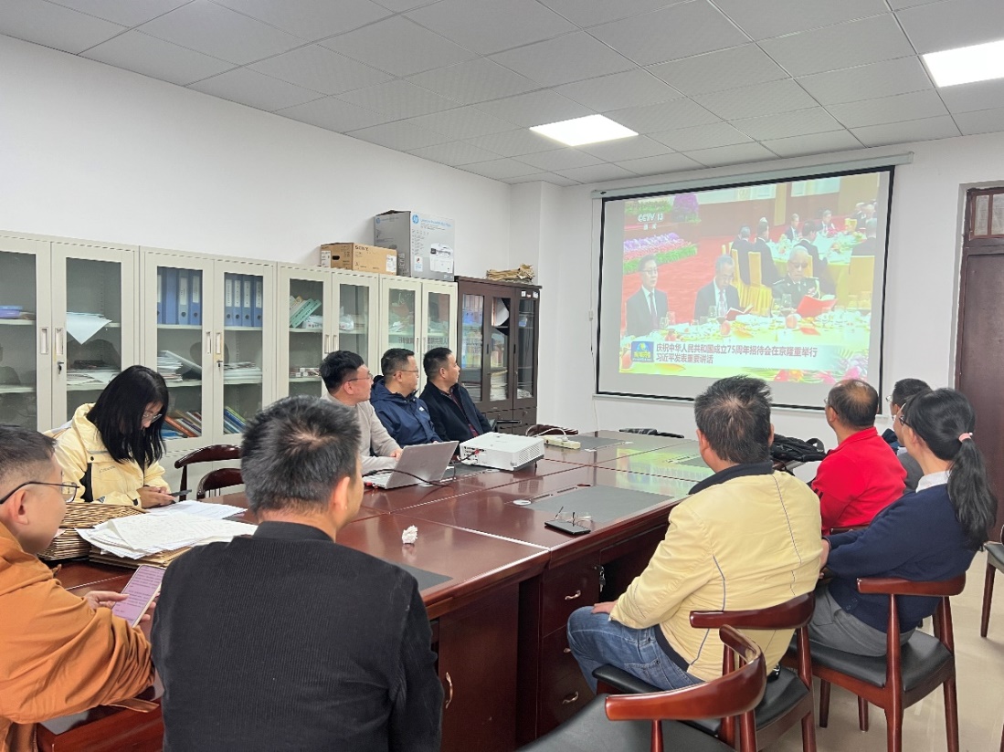 10月22日,物理党支部、电子党支部、实验党支部,23日,机关党支部,分别组织支部党员认真学习了习近平总书记在庆祝中华人民共和国成立75周年招待会上的讲话,深入了解新中国成立75周年来取得的伟大发展成就,深刻感受到祖国从站起来、富起来到强起来的历史性跨越,深刻领悟党和国家对全面建设社会主义现代化国家的战略部署与人民情怀。